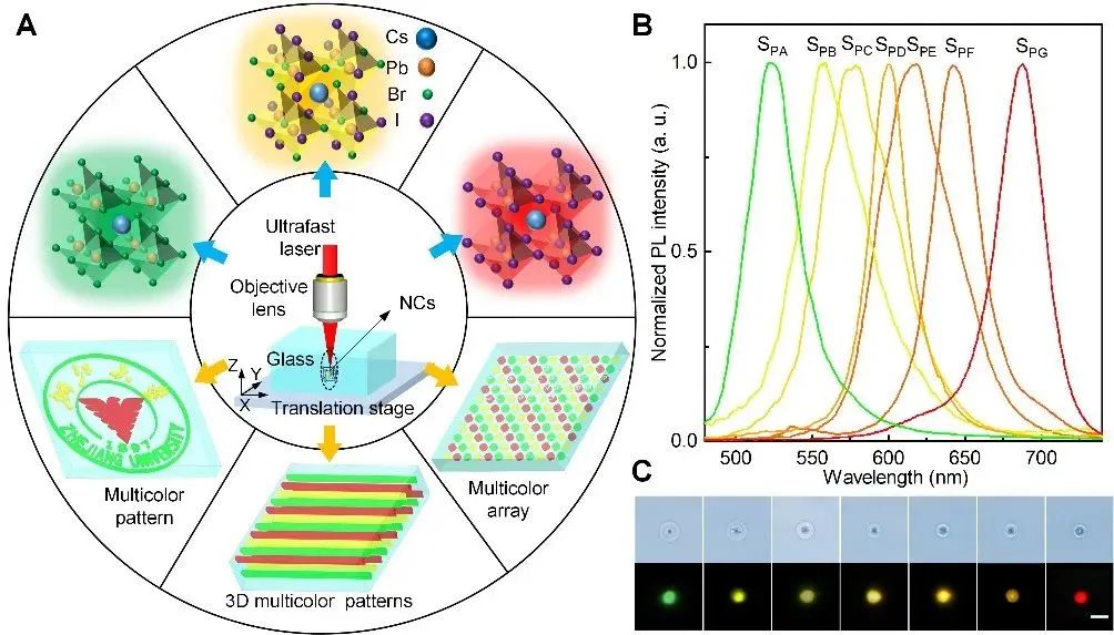 △ 飞秒激光诱导带隙可控结构示意图以及三维图案化的实现